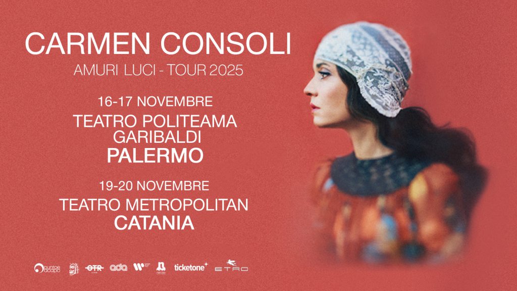 - Carmen Consoli porterà il suo nuovo progetto “Amuri Luci” in concerto anche a Palermo, con due date al Teatro Politeama Garibaldi il 16 e 17 novembre 2025, ore 21:00